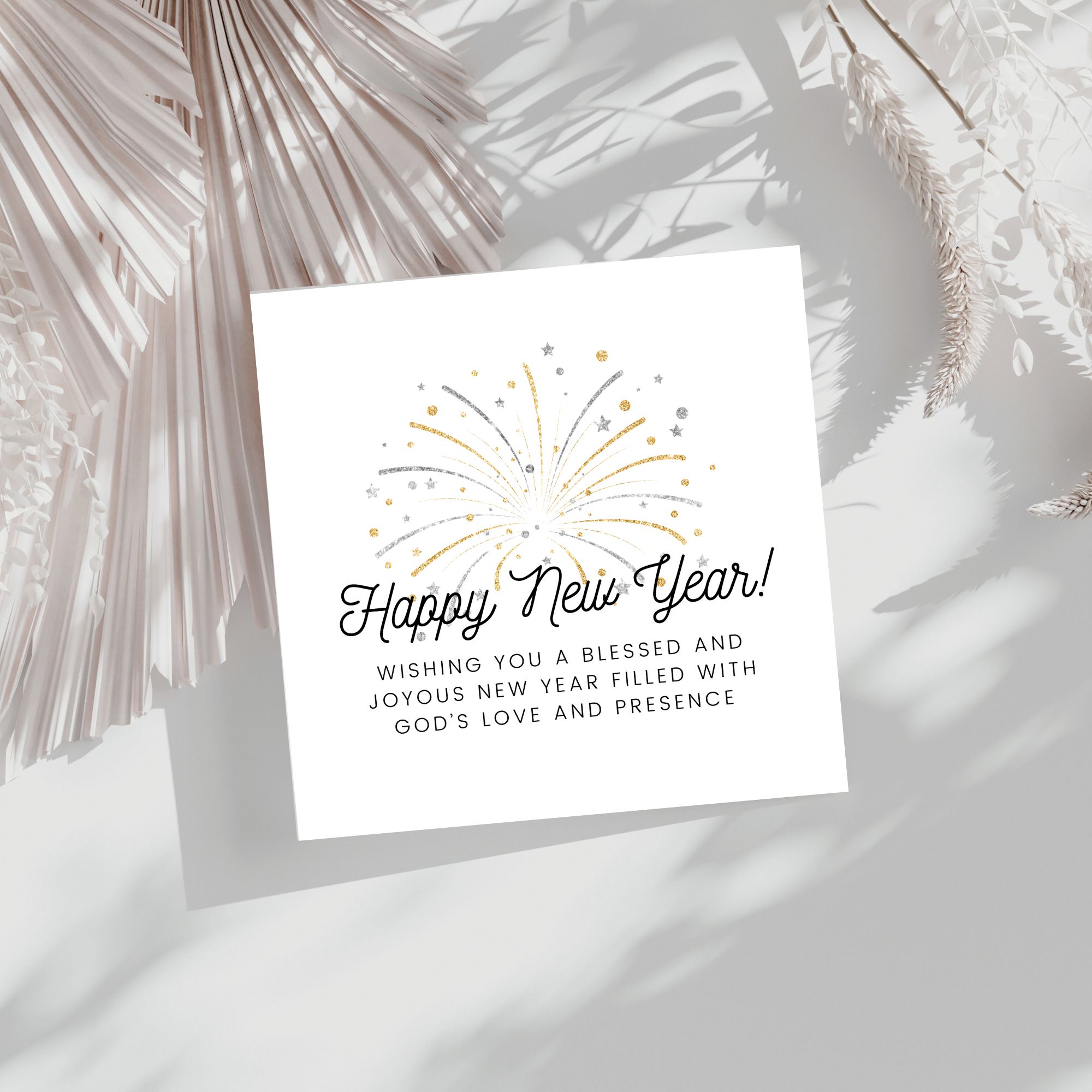 Give these religious Happy New Year cards to your Christian family, Church friends and loved ones, and show them they matter to you. This premium pack of Boxed Luxury Christmas Collection Cards showcases 5 distinct designs with New Year fireworks (PRINTED GLITTER, NOT ACTUAL GLITTER ON THE CARD) to make your holiday greetings unique and memorable. Welcome the New Year with God’s presence, and wish your loved ones a blessed year ahead with this inspiring and thoughtful Christian card set.