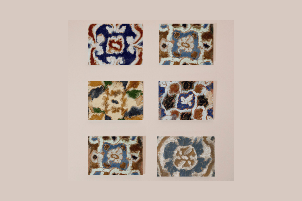 SET OF 6 ANTIQUE Spanish Tiles MiniATURE Art Prints (s601PC)