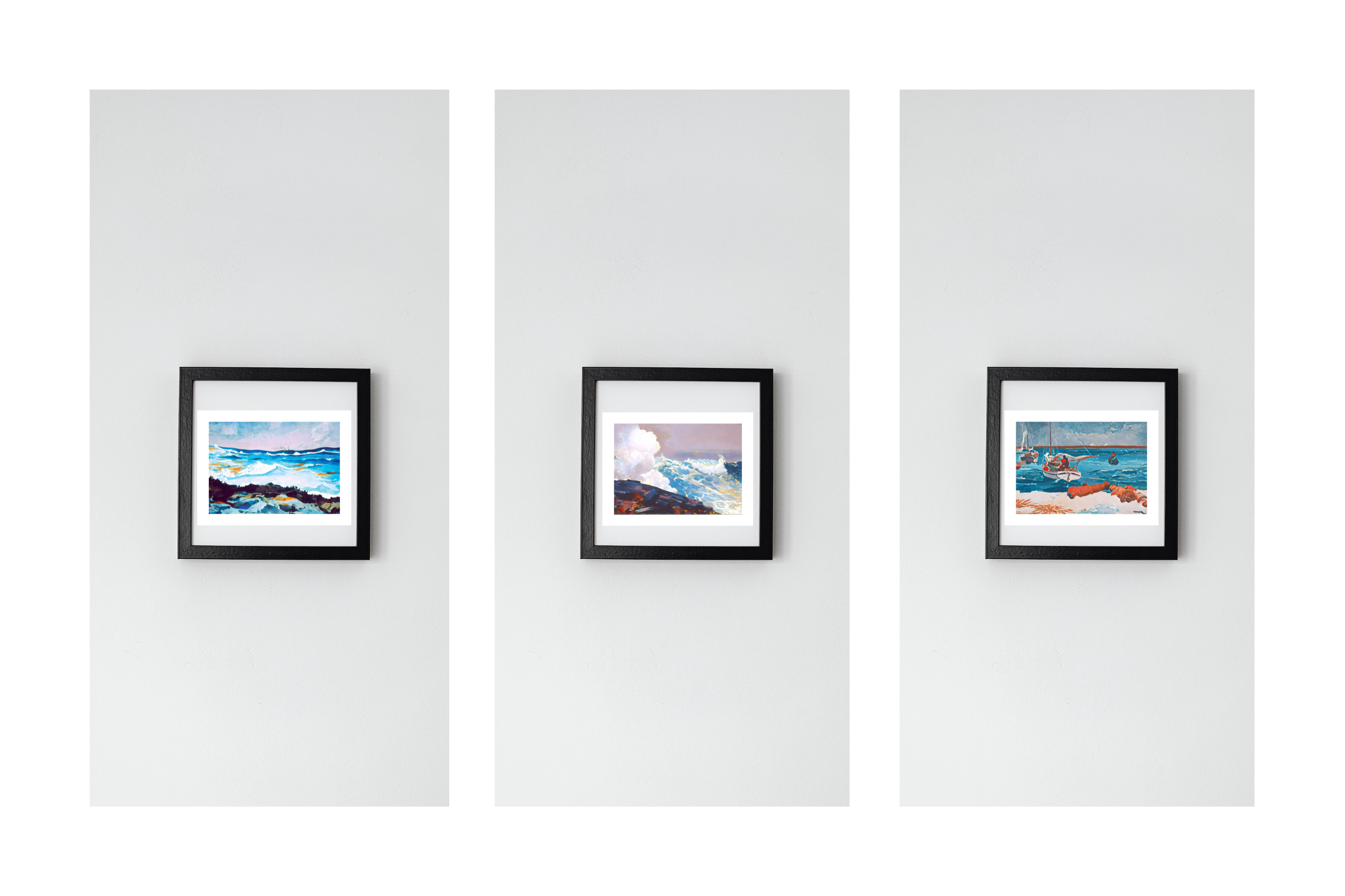 These are three digitally remastered watercolour paintings by Winslow Homer, renowned for his marine prints from the 19th century.