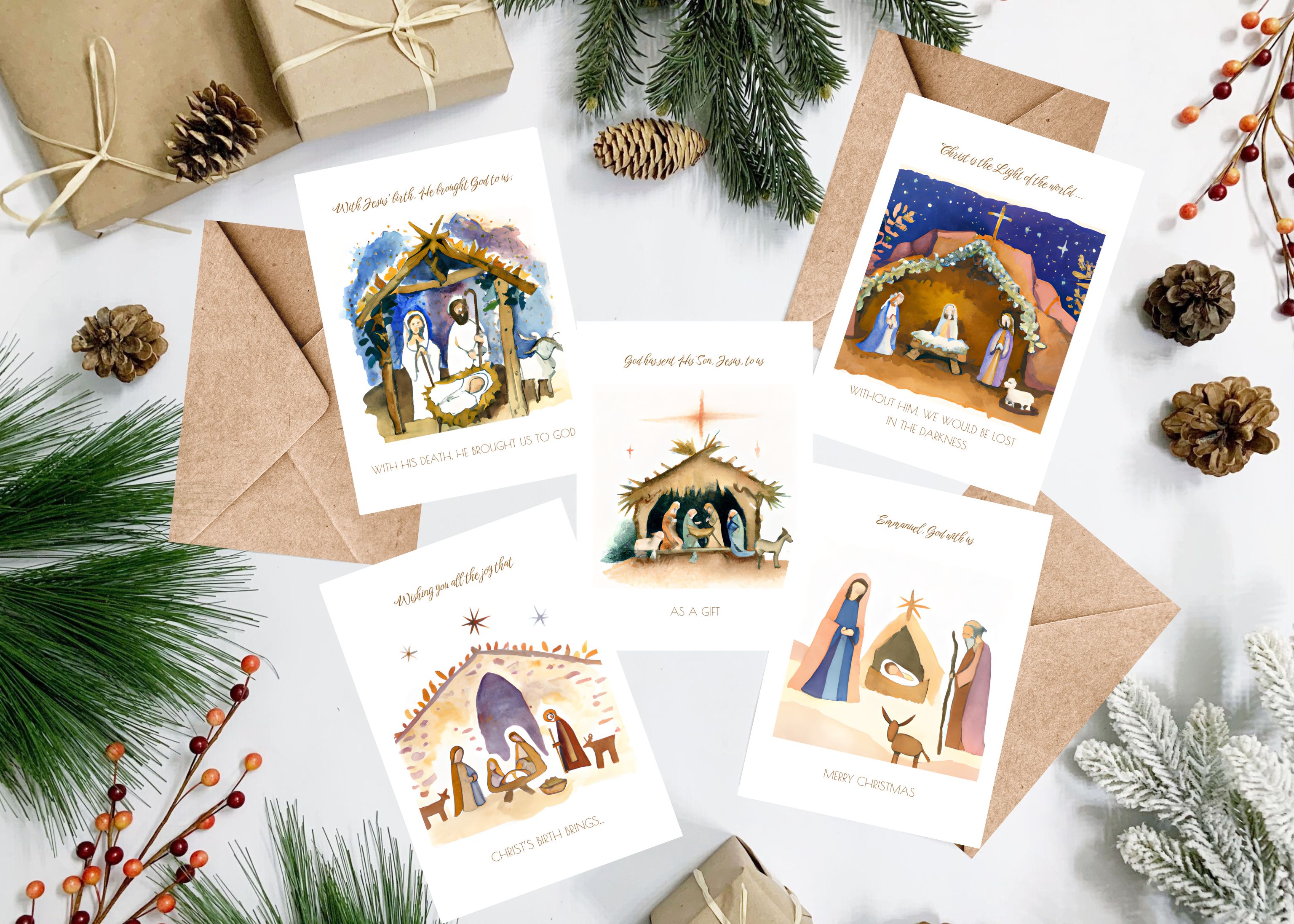 • Sets of Nativity Christian Christmas Cards